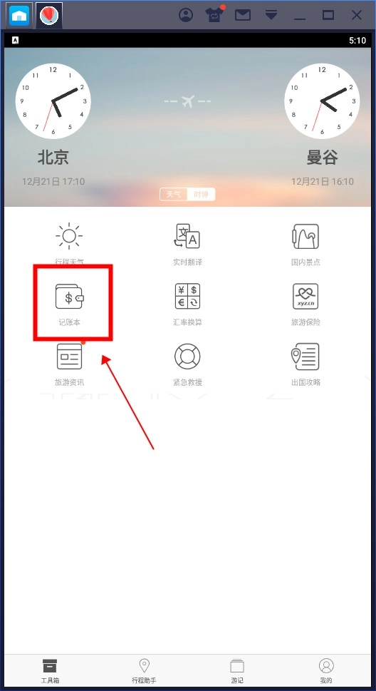 打开旅行箱App,进入首页后,找到并选择“记账本”功能。