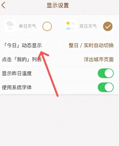 4、成功进入显示设置后,点击选择【今日动态显示】这个按键选项