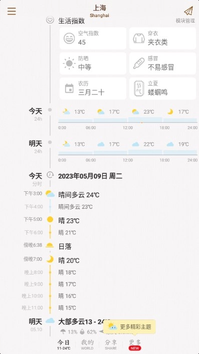 5、所有风格尽在其中:我们为用户精心打造了定制主题,涵盖经典、黑夜、像素、唐风等多种风格,没有哪款天气预报软件能像它这样与你如此贴近。
