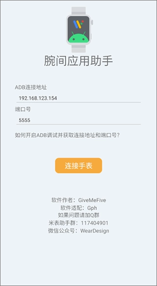 3、获取到手表的ADB链接地址后,打开软件并将该地址填入,接着点击“连接手表”按钮;