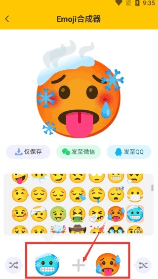 用户可任意挑选两个Emoji进行自由组合,从而生成全新的表情包。