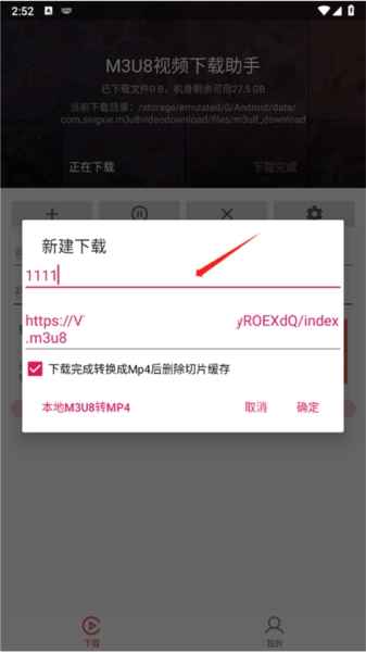 6、将m3u8所在的地址输入到软件就可以执行