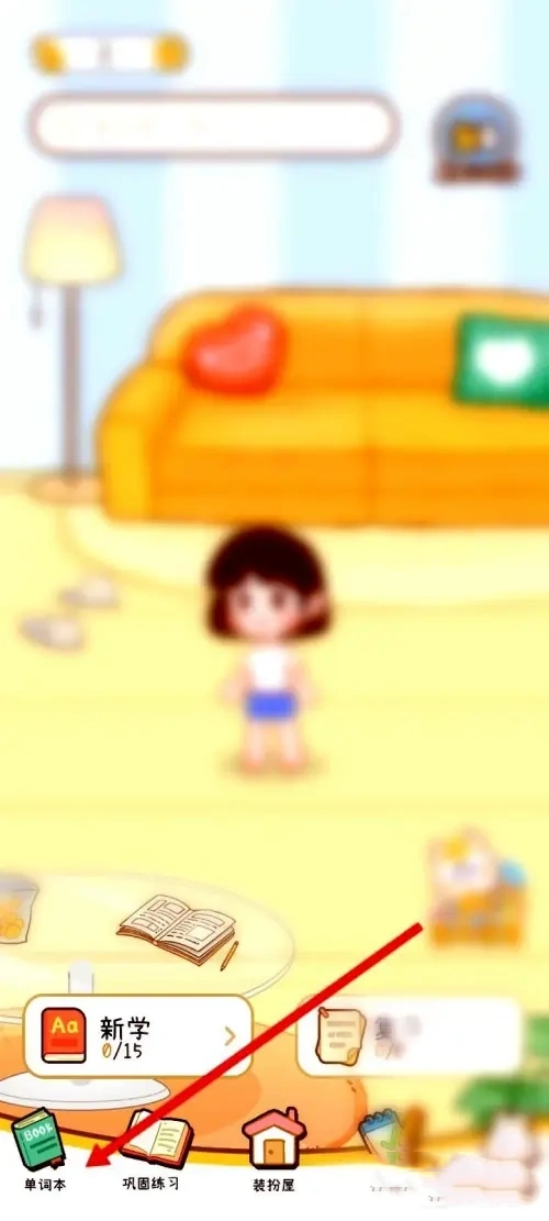 2、打开布丁单词的首页后,点击页面底部的“单词本”选项。