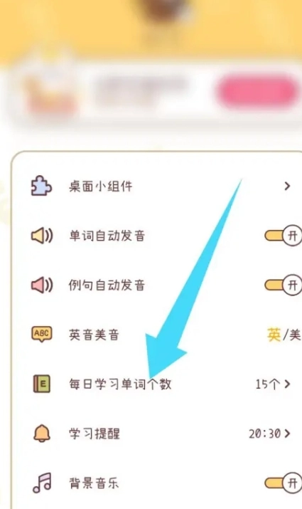 2、点击“每日学习单词个数”