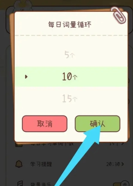 在弹出的设置界面里,你可以通过拖动滑块或者直接输入数字来设定每日学习的单词量,设置好后点击【确认】按钮就能保存更改。