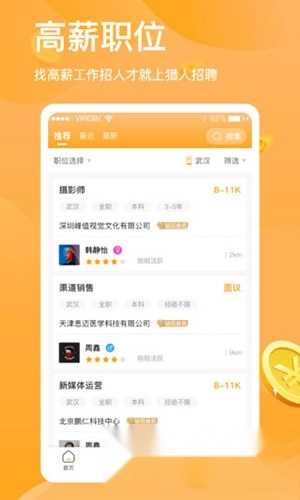 猎人招聘提供高薪职位与附近职位的智能推送服务,助力您快速入职理想的高薪岗位。