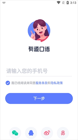 1、用户进入有道口语后,可选择不同的登录方式完成登录或注册操作。