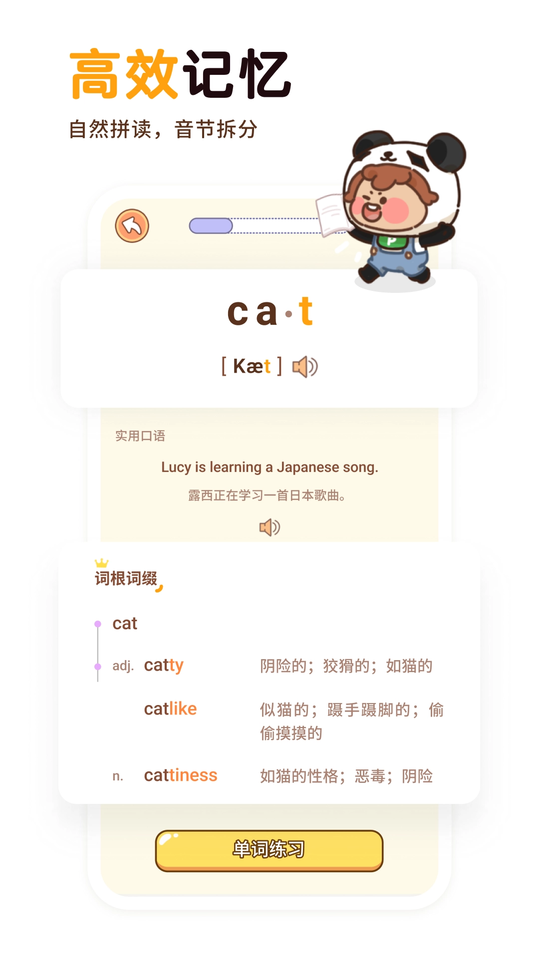 1、运用词根词缀学习法,助力用户告别死记硬背,借助词根拆解来记忆单词含义,从而提高单词记忆的效率。