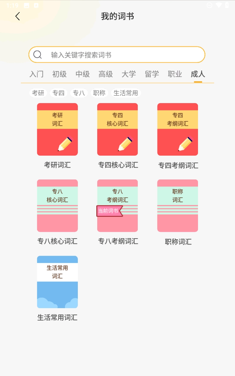 5、用户还可以在“我的词书”界面获取各类教材资源。
