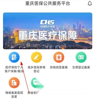 1、打开重庆医保APP进入首页,点击“医疗保险个人账户关联/取消”选项。