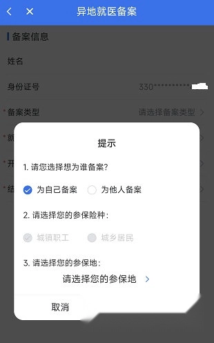 2、填写备案信息,完成填报后就能在异地就医时刷医保结算。