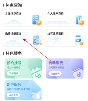 1、打开重庆医保,找到热点查询页面,点击“缴费记录查询”。