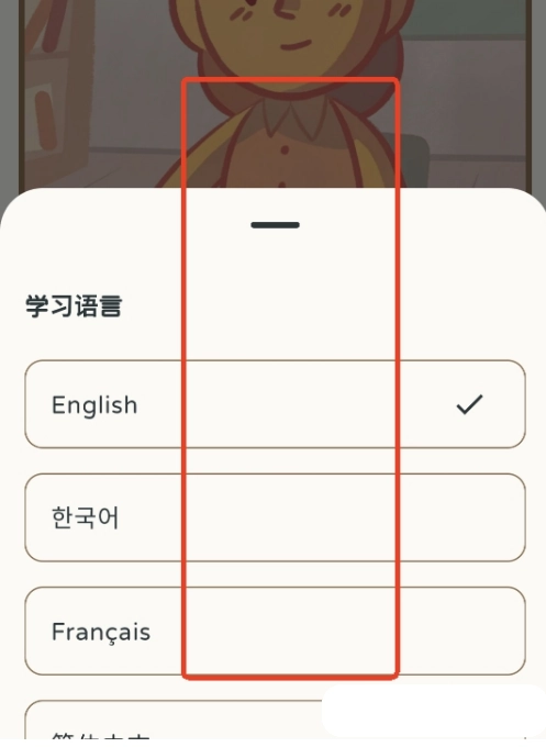 3、在系统给出的语言列表里,选择任意一项来设定为新的学习语言。