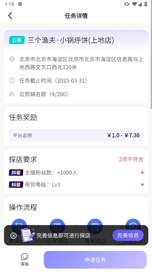 等待平台审核,审核通过后即可开始探店。