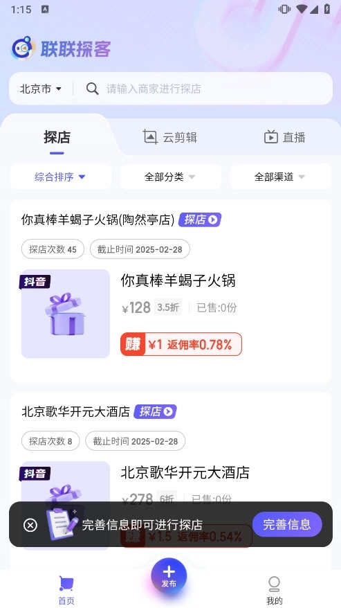 联联探客是一款融合探店、分享与赚钱功能的本地生活社交应用。这个经过精心打造的平台,既为用户提供了丰富多样的探店任务,又支持用户通过完成任务赚取佣金,甚至有机会获取各类霸王餐福利。当用户把联联探客融入日常生活后,不仅能发现身边的美食与娱乐好去处,还能轻松为自己增加一份额外收入。