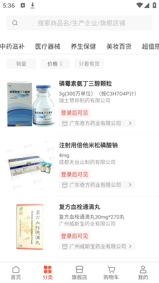 2、搜索商品:借助搜索功能或分类浏览的方式,查找所需的药品或器械。