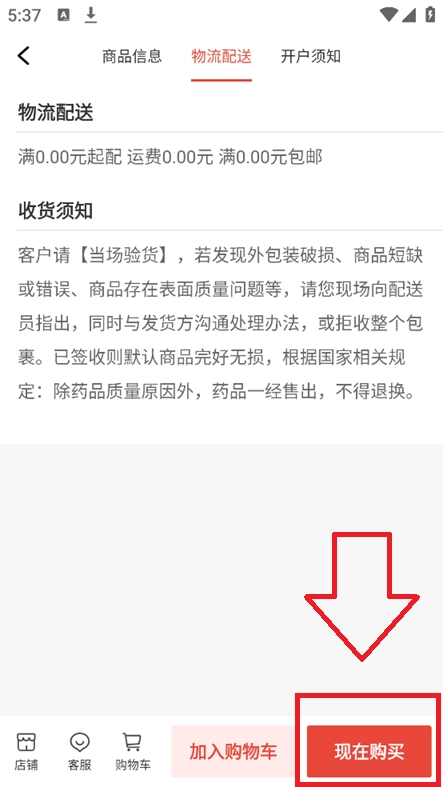 3、查看详情:认真阅读药品说明书、规格参数、生产厂家信息以及商家的物流政策。