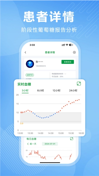 对患者进行监测:实时追踪患者的血糖波动情况,以直观的方式呈现血糖变化趋势。
