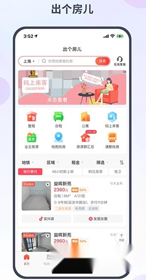 出个房平台拥有海量房源,涵盖业主直租、二房东转租以及品牌公寓等多种类型,总房源数量高达20万间。用户可以在平台上快速检索并深入了解各类房源信息,轻松找到性价比高的优质好房。平台的房源覆盖全国各大城市,无论您身处国内哪座城市,都能享受到平台提供的优质租房服务。此外,平台上的房源均为房东直接发布,您可以直接与房东本人取得联系,并且支持电话沟通、视频看房以及线下见面等多种交流方式,十分便捷。