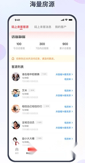 1、10万+房源:北上广深苏等各大城市的大业主房源、二房东房源、公寓房源等总计超20万间,每天有专人负责更新,结合AI技术持续迭代房源信息,确保房源及时上下架;