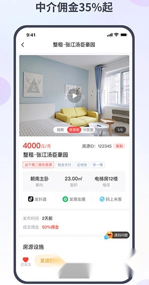 4、担保佣金35%:佣金低至35%起,平台保障中介权益,若房东出现拖欠情况,将由平台先行垫付。