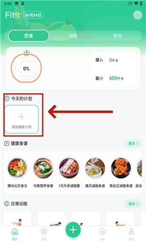 4、在首页点击“添加计划”功能选项,用户还可以添加今日的运动计划。