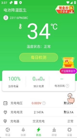 电池降温医生是一款专业的电池管理工具,它可以实时呈现电池的各项信息,帮助用户直观了解电池的运行状态,从而及时采取优化措施,确保电池使用安全并延长其使用周期。该软件具备高温预警功能,一旦检测到电池温度过高就会立即发出提醒,即便是在枕边充电也能让人放心。此外,它还能有效为电池降温,在炎热的夏季帮助电池维持稳定的温度,让设备使用更加安全。有需要的用户不妨尽快体验一下。