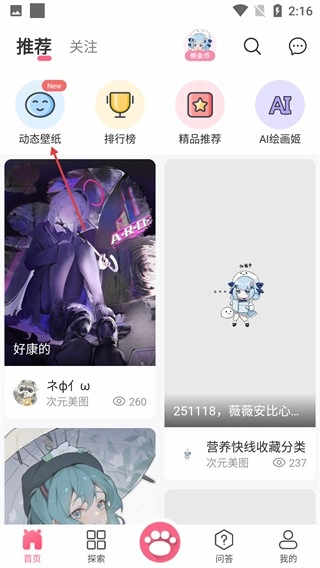 1、在首页找到并点击【动态壁纸】图标,即可进入动态壁纸页面。
