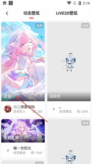 2、在动态壁纸页面挑选心仪的壁纸,例如“昔涟”这款壁纸。