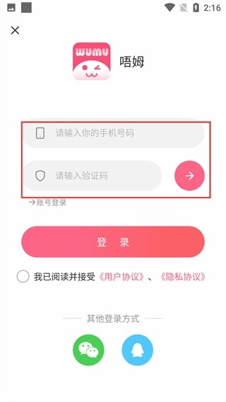 4、在登录页面输入号码与验证码,完成账号登录后,就可以进行壁纸设置了。
