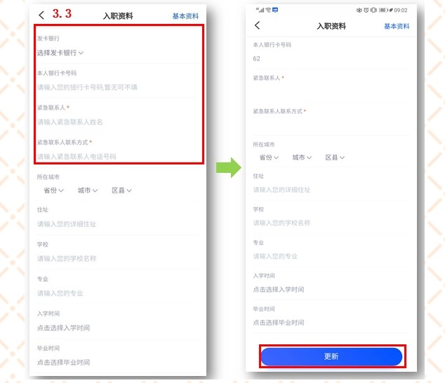 3、登录成功后,点击“账号”选项,按照指引上传基本资料与入职资料。