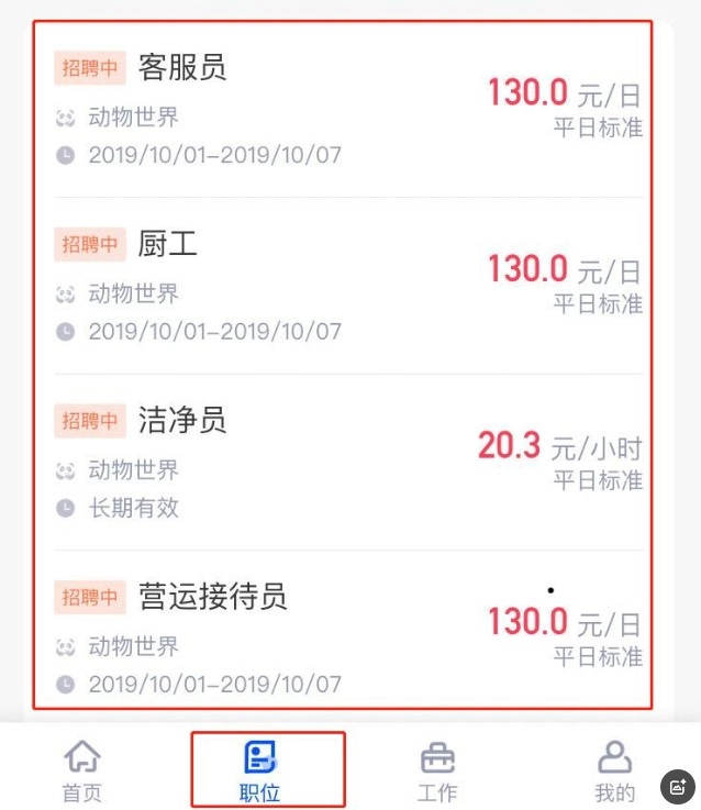 4、在完成基本资料与入职资料的上传后,您可以进入“职位”模块,选择“单位”分类下的“动物世界”,浏览相关岗位并依据自身需求申请职位。
