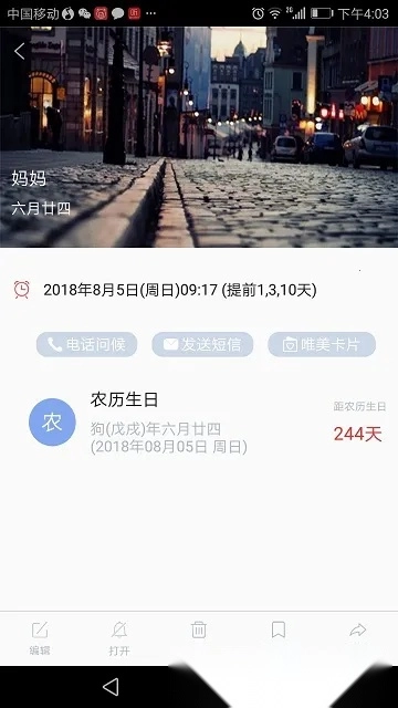 它的特色也很鲜明:提醒记录支持手动备份至云端,数据能够永久保存,即便更换设备也能实现无缝同步。此外,工具还支持从通讯录、微博批量导入生日信息,也能批量导入节日安排;生日日期可在公历与农历间自由转换,系统会自动计算对应的星座和生肖;同时提供丰富的生日祝福短信模板,甚至具备生日节日礼物功能,像在线订购生日蛋糕、中秋月饼等都能一键完成。