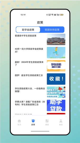 政策信息实时同步:确保用户能够随时掌握政策内容,紧密跟进助学领域的最新动态。