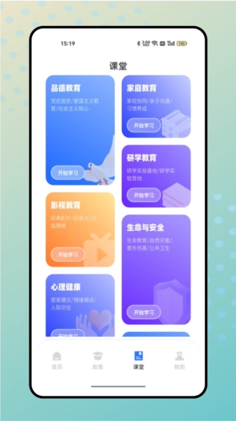 智慧资助平台具备多重实用功能:一方面,它实时更新助学金政策动态,方便用户随时获取最新信息;同时,平台还详细列出申报条件与实用攻略,让申请流程更清晰透明,助力用户顺利完成申报。平台内汇聚了丰富的助学金相关内容,从政策解读到操作指南一应俱全,确保用户能准确完成申报步骤。此外,平台还整合了心理健康、品德教育、影视教育、家庭教育等多元教育课程,覆盖多方面成长需求,旨在促进学生全面发展、提升综合素质。用户可随时在线学习这些课程,轻松获取知识,为个人成长助力。