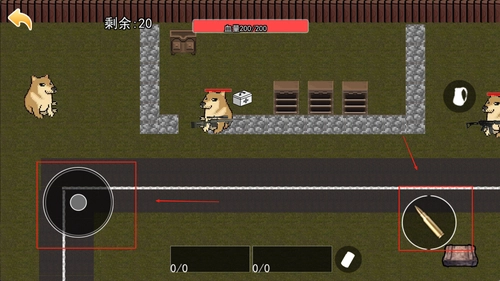 2、操作界面设计清晰明了,屏幕左侧的按钮用于控制移动方向,右侧则分布着射击与技能相关的按钮,上方区域清晰显示当前的血量和弹药剩余情况,信息呈现直观易懂。