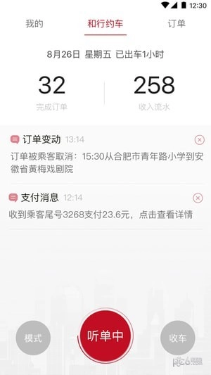 和行约车司机端支持设置听单模式,司机可以在线收听订单的具体信息。