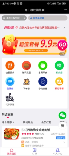 2、实时同步外卖配送进度,确保准时送达校园内所有地点,避免影响师生的上课、休息与学习时间。