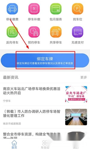 1、打开宁停车应用,在软件首页就能找到“绑定车牌”的功能选项,点击该选项即可进入绑定流程。
