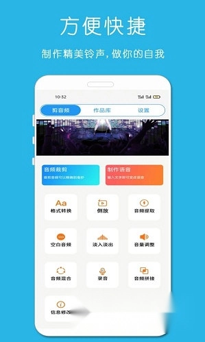 音频合成功能支持各类音频的无缝拼接合成,用户可自由编辑制作自己喜爱的音频铃声MP3。