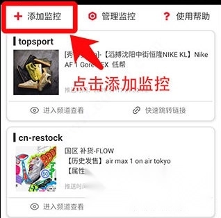 3、点击添加您需要监控的频道