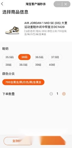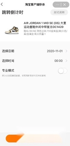 五、选定购买的具体信息,像尺寸、颜色、数量等,然后点击【定时跳转】按钮。