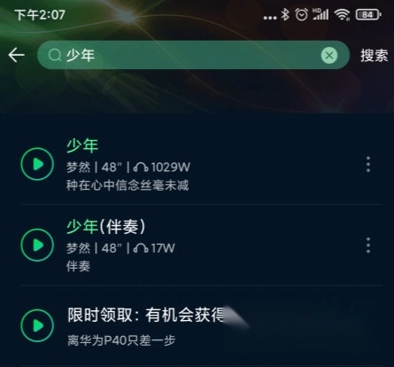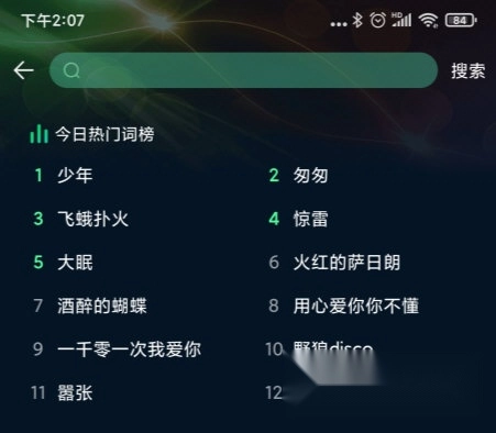 你可以自行搜索你喜欢的歌曲,也可以点击其中的排行榜。