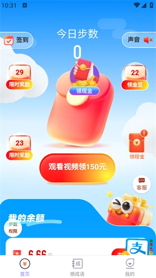 2.在主页面就能看到今日步数、签到、限时奖励等功能;
