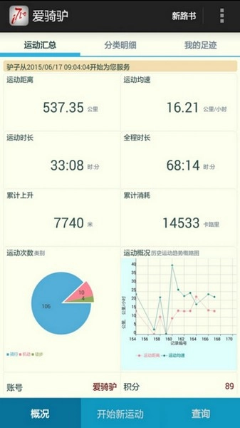 6.数据统计:可按时间与运动类别开展统计分析,运动的实时状况与发展趋势都能清晰掌握