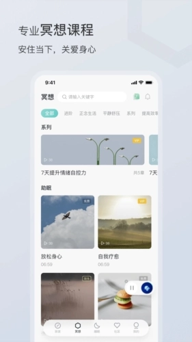 睡前把门锁好,冥想能帮助入睡,催眠音乐会持续播放不中断,也可以设置定时结束。