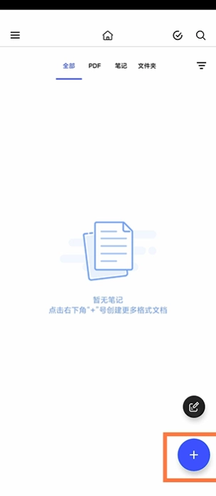 1、打开notein笔记点击右下角的加号