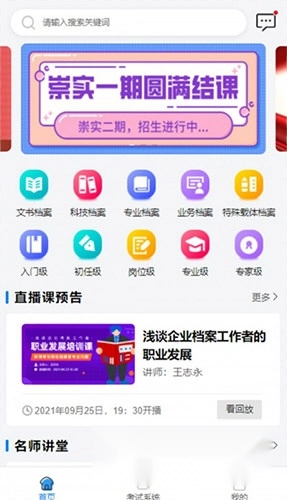 档案云课堂平台是一款优质的职业培训学习软件,平台上设有文书档案、科技档案、专业档案、业务档案、特殊载体档案等不同类型的档案学习课程。通过这些课程,用户能够深入了解各类档案的管理标准,从而提升自身业务水平,力求掌握全面的档案管理技能,将档案工作做得精益求精。