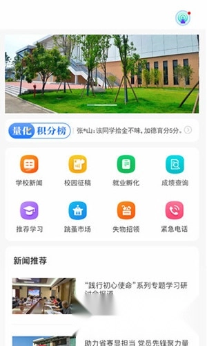 3、整合了蓝牙考勤、德育考核、校园新闻、成绩查询等多种功能。