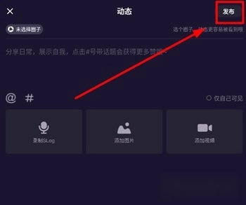 3、在这里大家输入想要发送的内容后点击发布即可。